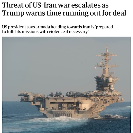 The Threat of war does not have agency to escalate, it is one of the sides that is escalating. “Threat of US-Iran war escalates” intentionally obscures the truth: that it is the US doing the “escalating” – and that its escalating is entirely illegal.